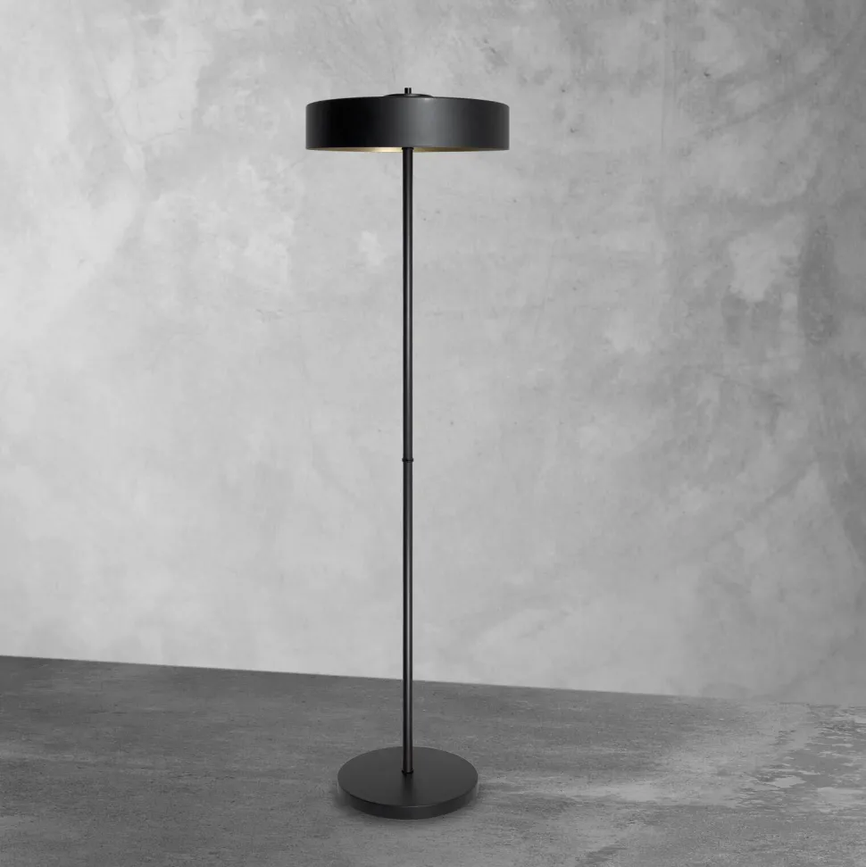 Runde Stehleuchte für das Wohnzimmer aus massivem Messing in Schwarz und Gold