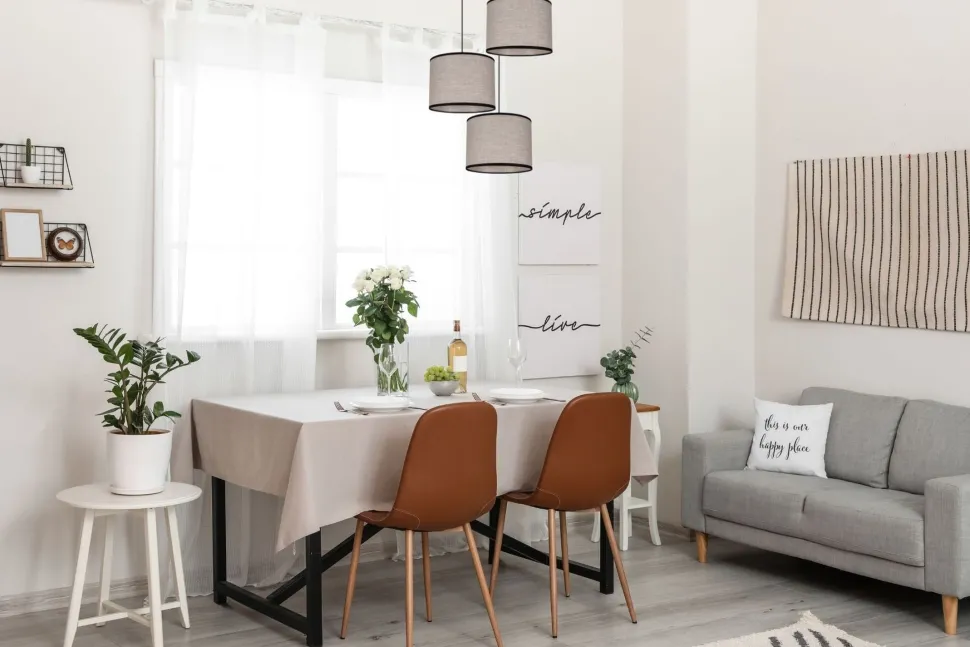 Die Stoffschirme streuen das Licht blendarm – ideale Hängelampe für gemütliches Licht in Wohnzimmer und Esszimmer über dem Esstisch