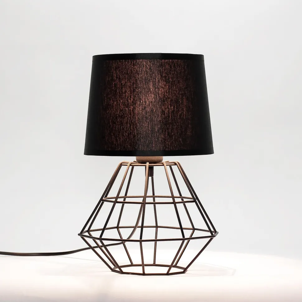 Kleine Tischleuchte mit Metall Fuß im geometrischen Frame Design