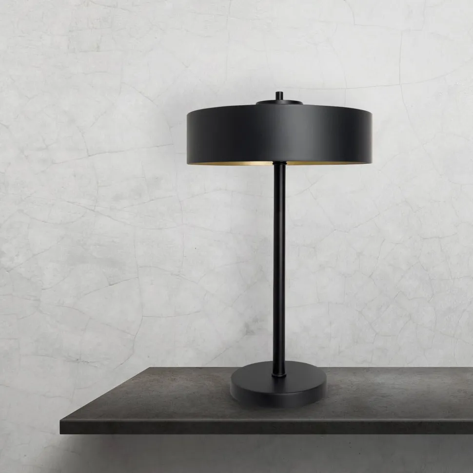 Runde Tischleuchte aus massivem Messing in Schwarz und Gold
