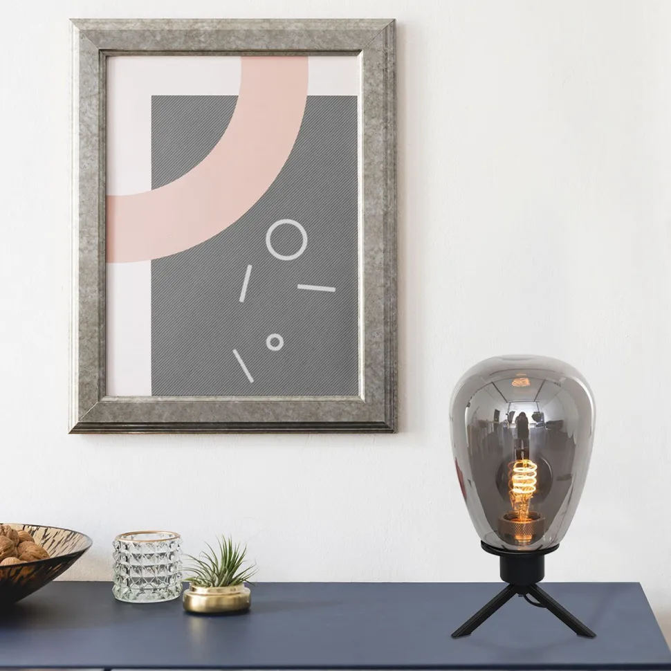 Moderne Tischlampe aus Metall und Glas in Schwarz und Rauchgrau