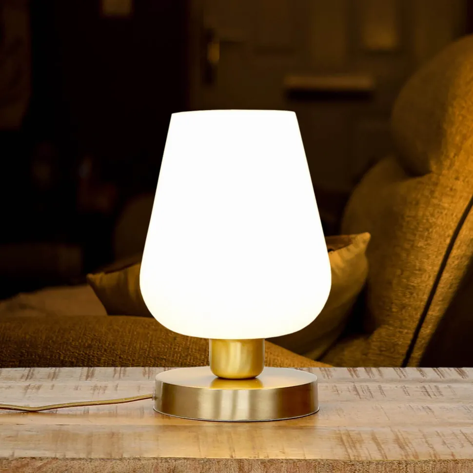Das Licht wird blendarm gestreut und sorgt für eine angenehme Beleuchtung – ideal als Nachttischlampe oder zur Ambientebeleuchtung im Wohnzimmer.