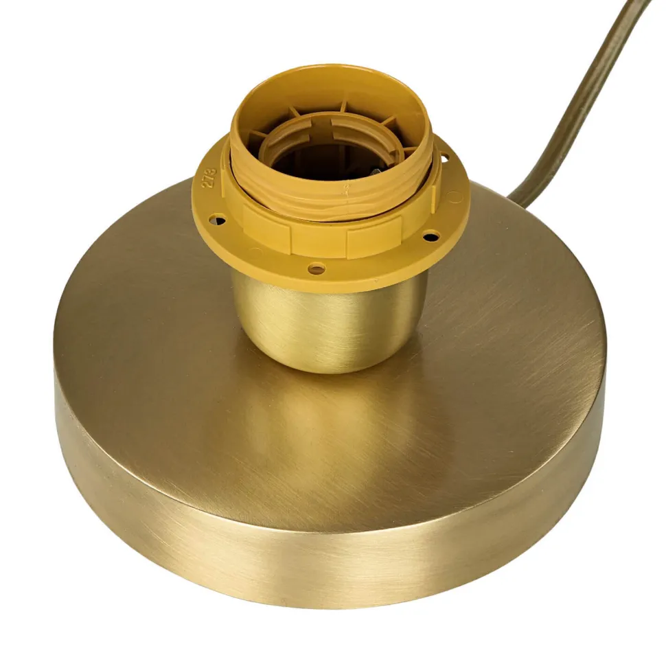 Dekorative Tischleuchte mit satiniertem Glasschirm und massivem Messingfuß