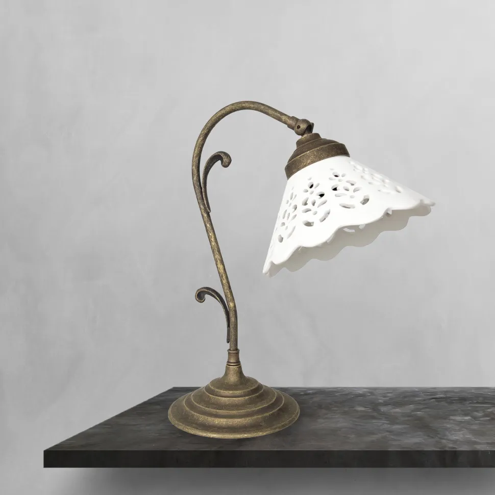 Verstellbare Tischleuchte aus massivem Messing und edler Keramik