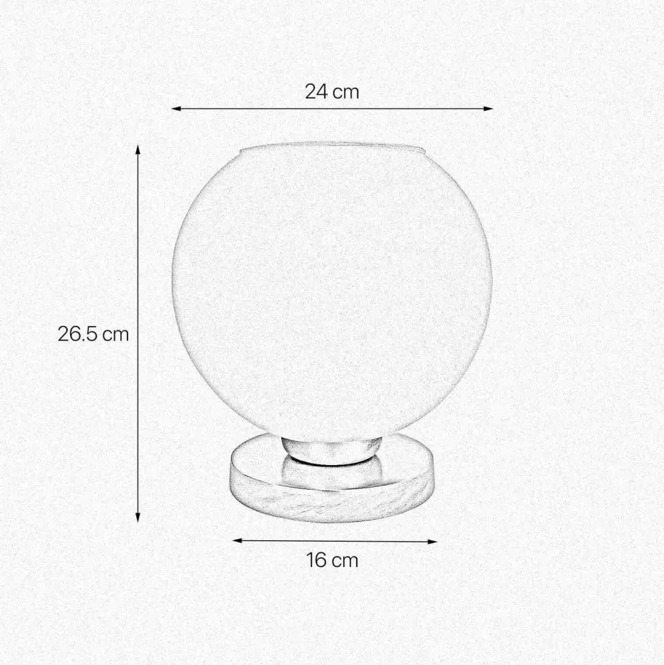Kleine Tischleuchte aus massivem Messing und Kugelschirm aus Glas