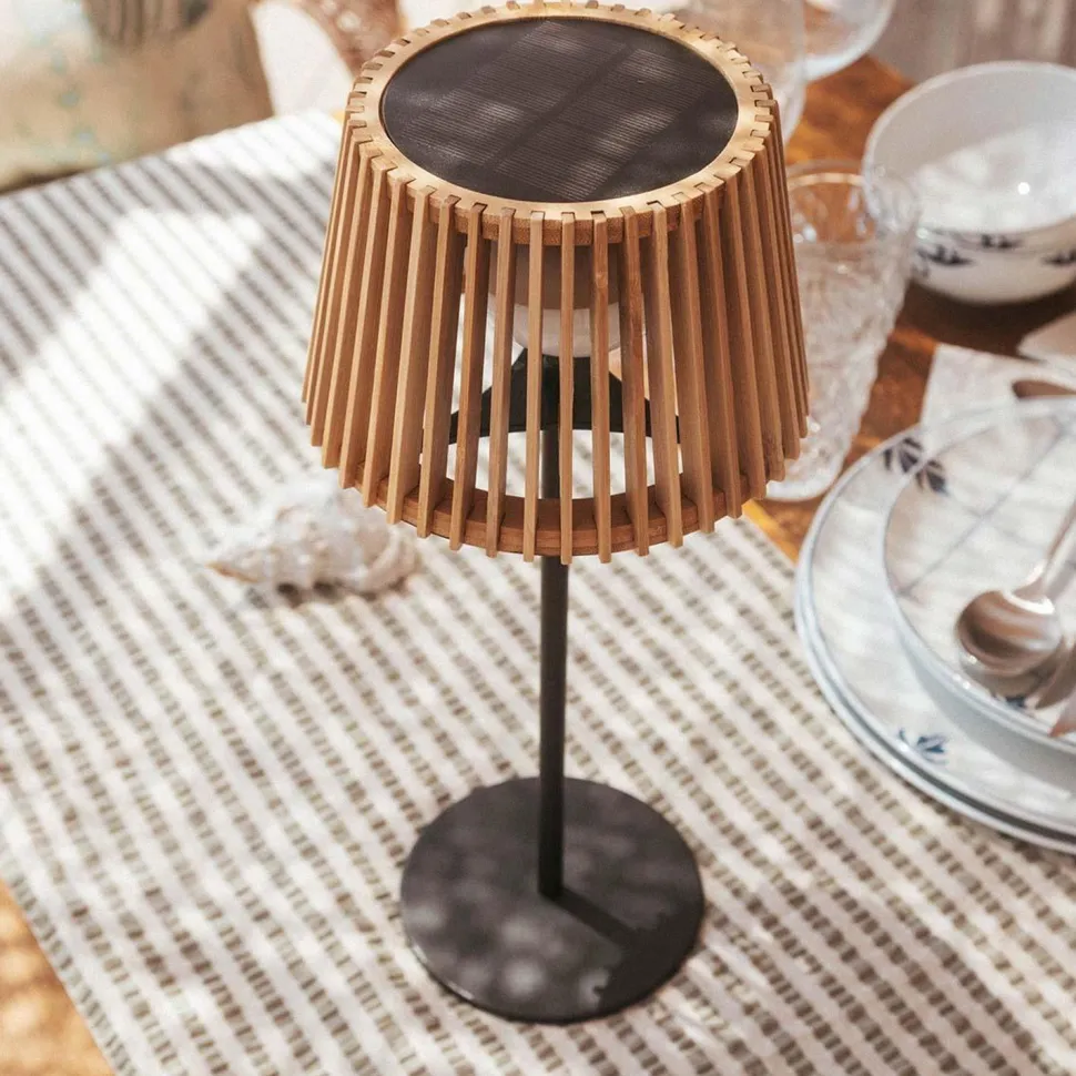 Das Highlight der Außenleuchte ist nicht nur der wohnliche Bambus Schirm, sondern das tragbare und wiederaufladbare LED Leuchtmittel, das über seine magnetische Halterung einfach auf dem Solarmodul platziert und abgenommen werden kann (Leuchte hat keine eigene Fassung)