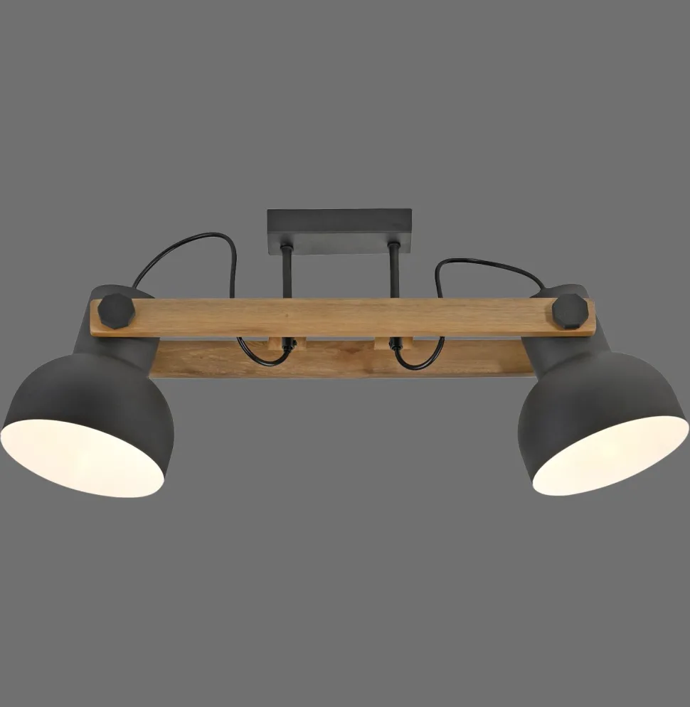 Industrie Deckenspot aus Metall und Holz in Schwarz