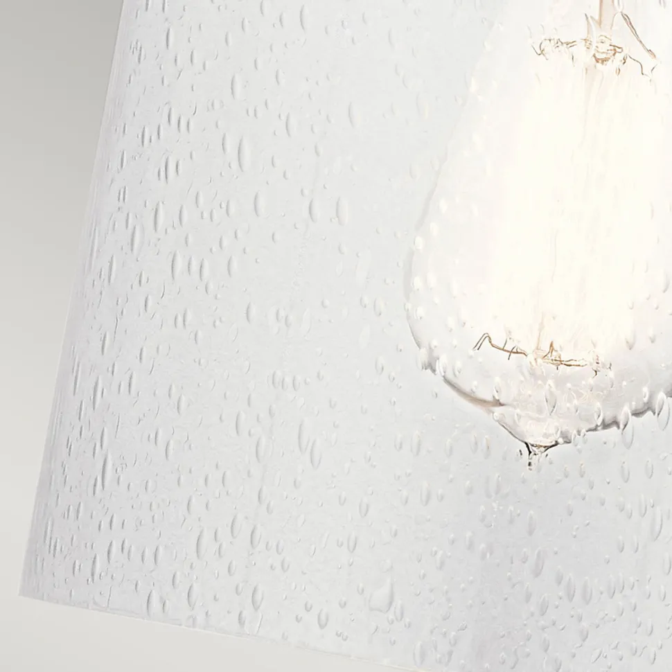 Das Regenglas erinnert an Wasser- oder Tautropfen, die sich in dem transparenten Lampenschirm aus Schirm gesammelt haben und im Lichtschein für einen zauberhaften Effekt sorgen