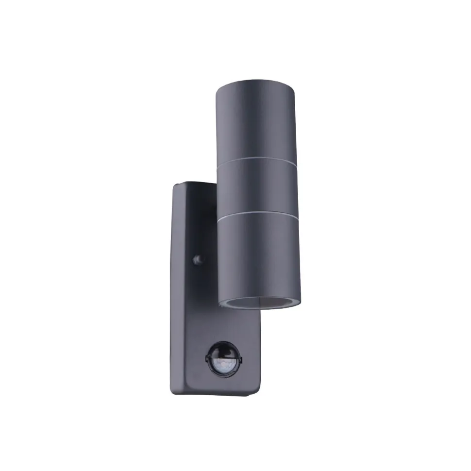 Moderne Up & Down Wandleuchte mit Bewegungsmelder für Außen aus Aluminium und Edelstahl