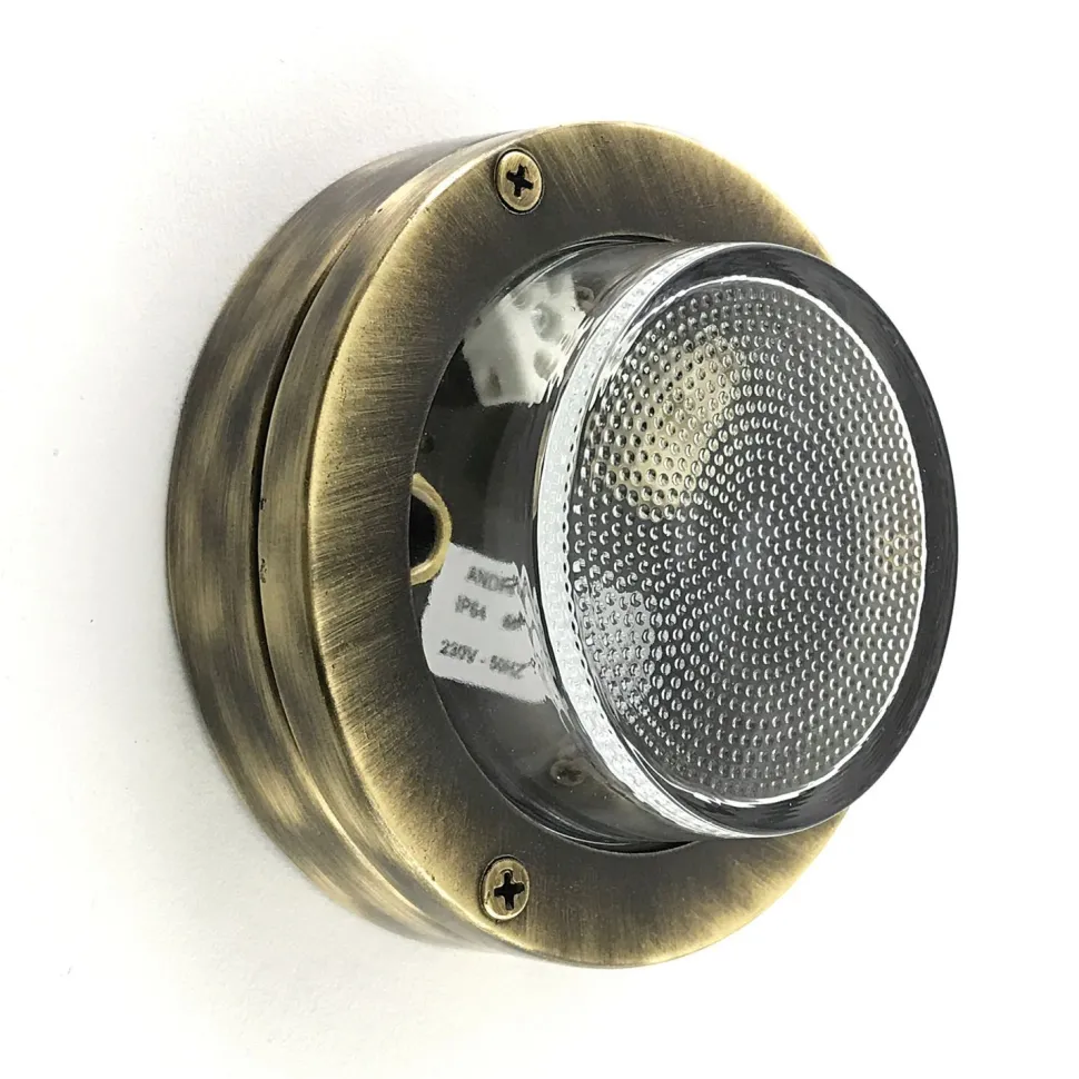 Runde außen Wandlampe aus massivem Messing und kunstvollem Glas in Messing: ideal als Haustür Lampe, Terrassenbeleuchtung, Balkon Lampe, Carport Beleuchtung und Garagenlampe