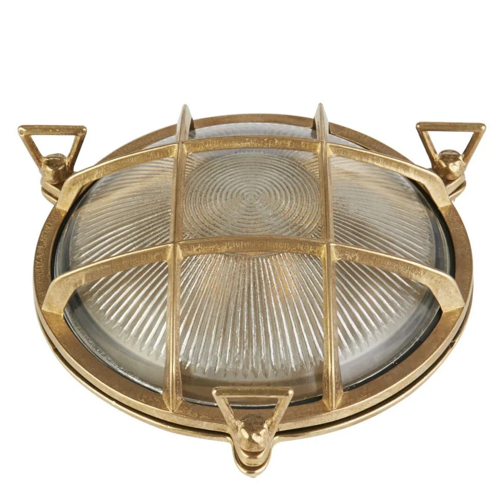 Maritime Außenleuchte aus rostfreiem Messing und robustem Riffelglas