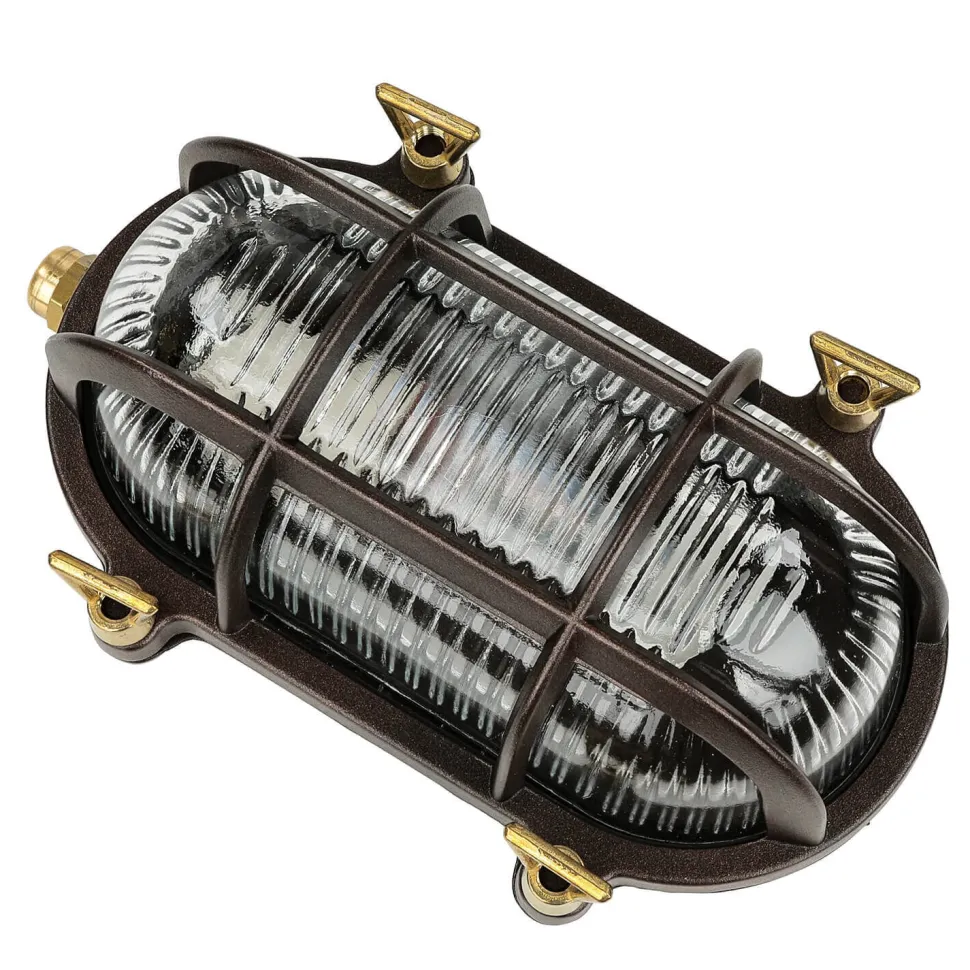 Die Außenleuchte ist ideal für Küstenregionen und Gegenden mit hoher Luftfeuchtigkeit: Messing ist absolut rostfrei und der Schirm hat eine zusätzliche Dichtung, sodass das Leuchtmittel besonders geschützt ist