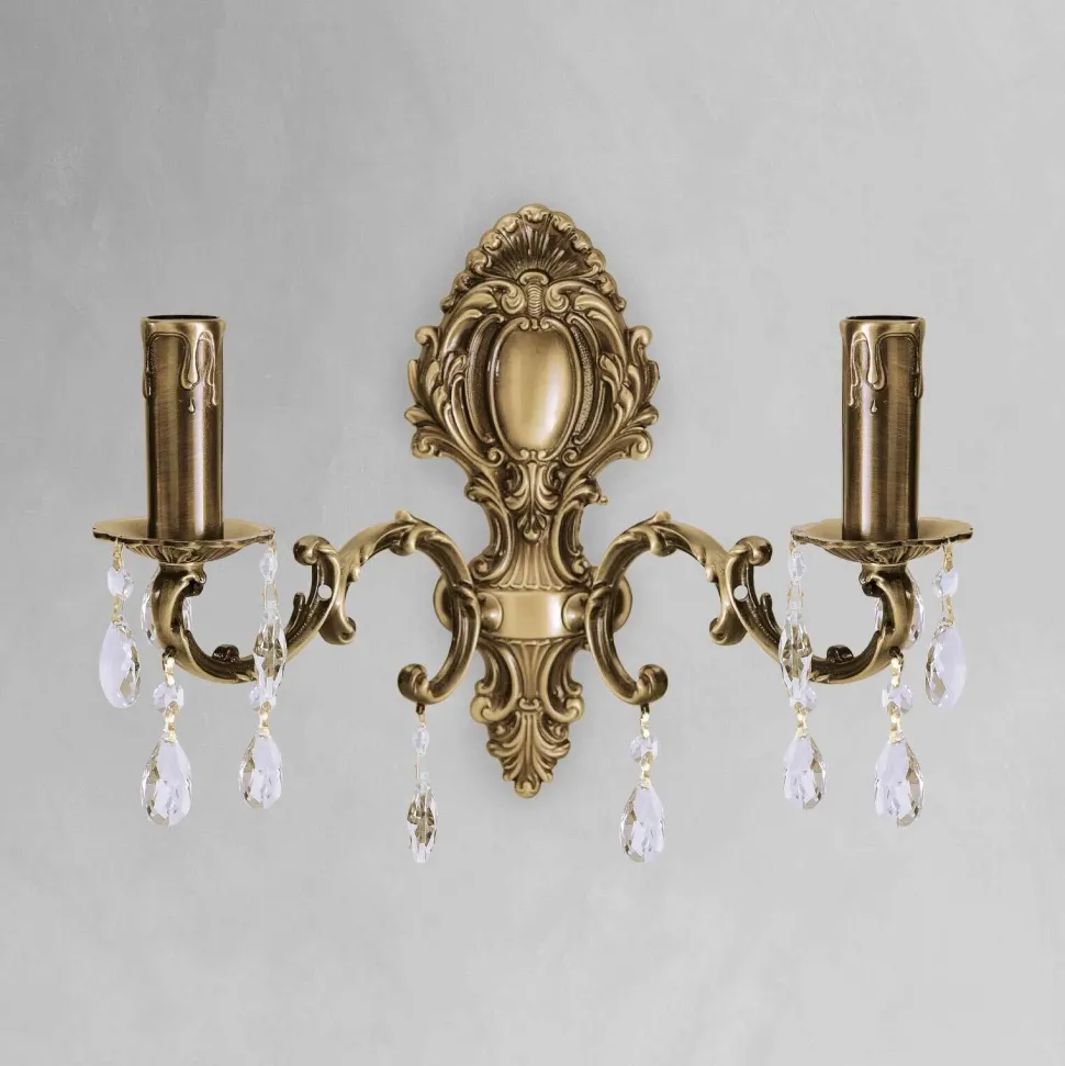 Die opulenten Verzierungen und funkelnden Kristalle verleihen der Wandleuchte einen edlen Charakter, der ideal in Schlafzimmer, Wohnzimmer und Flur passt