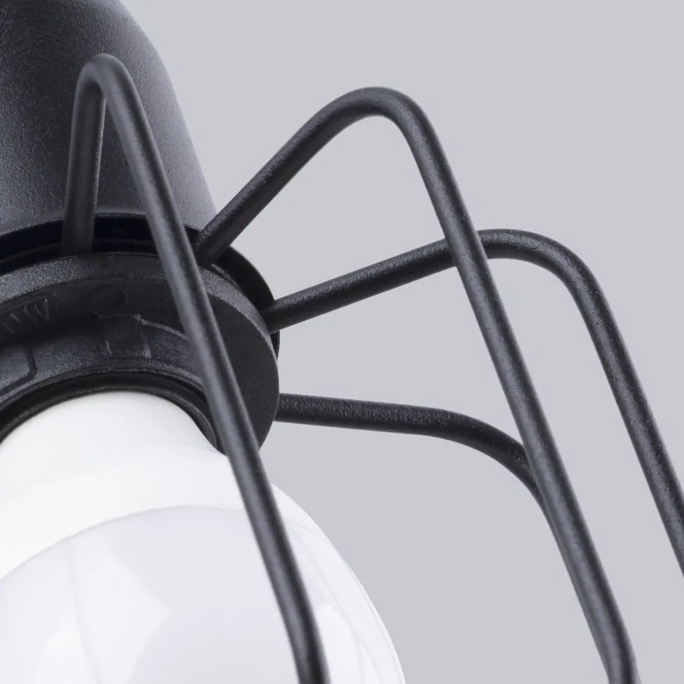 Der Drahtschirm sorgt für eine direkte Beleuchtung und setzt einen dekorativen Akzent