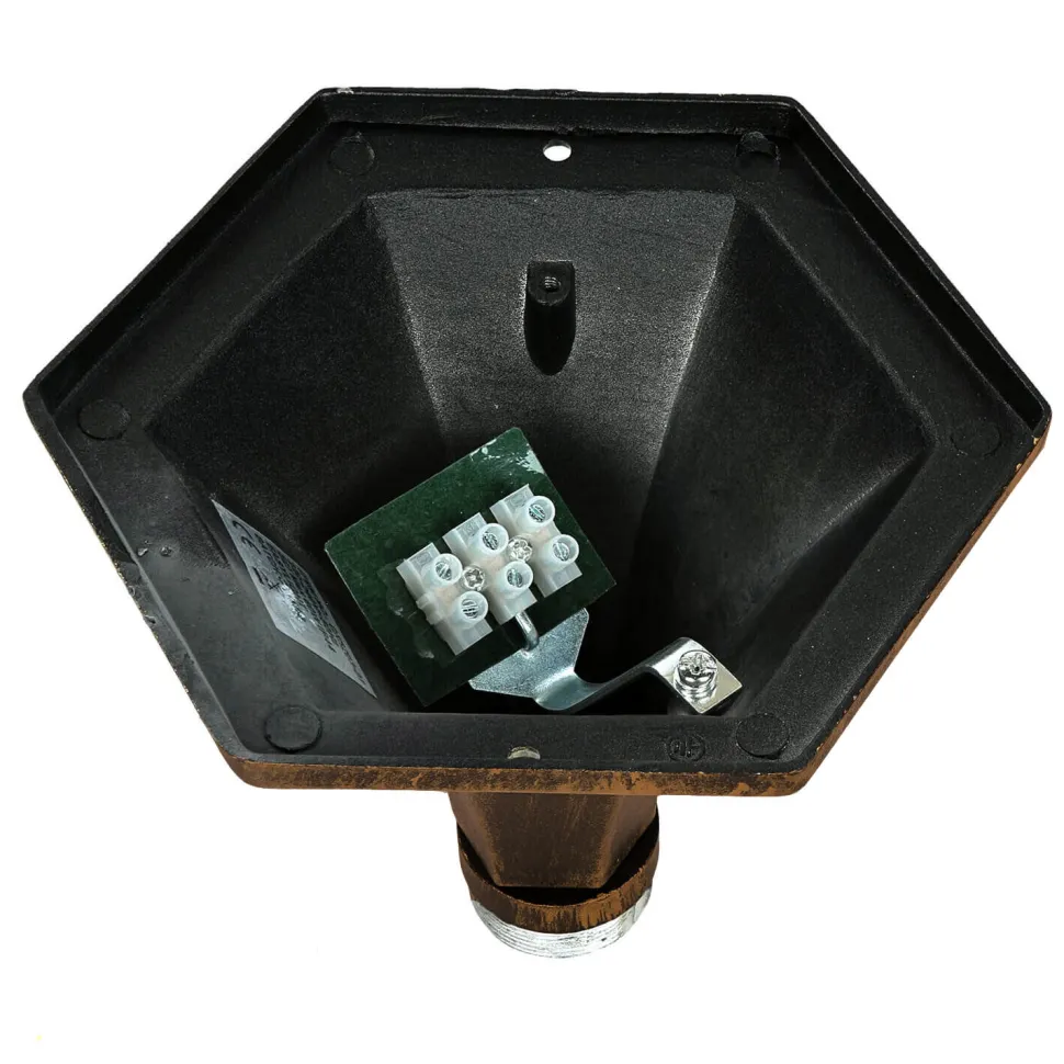 Rustikale Wegeleuchte in Schwarz Kupfer aus witterungsbeständigem Aluminium und robustem Glas